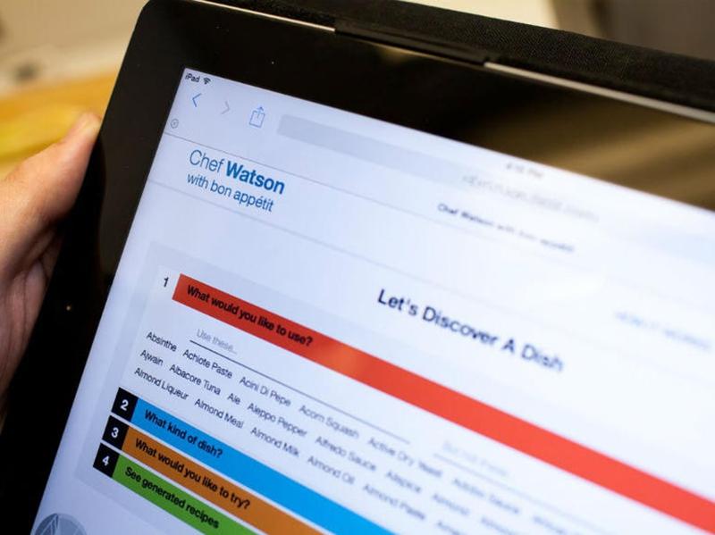 2014年,IBM和美国美食杂志Bon Appetit合作,开发了一个智能美食应用Chef Watson。Watson学习了9000多个食谱,并根据用户的口味、地域、宗教、民族等因素,为用户提供创新食谱,并教用户如何完成美食制作。