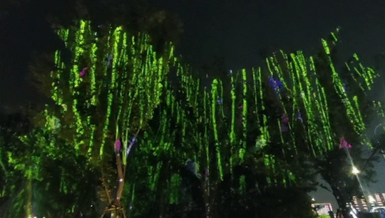 在树木上形成细腻、逼真的画面,对投影机的亮度、分辨率、色彩表现率都有较高的要求,此次使用的光峰工程S系列投影机,以光峰科技独有的ALPD半导体激光光源技术为核心、12000流明高亮度、16%红光占比,确保投影画面清晰地投射到树木上,形成生动、自然、真实的色彩效果。