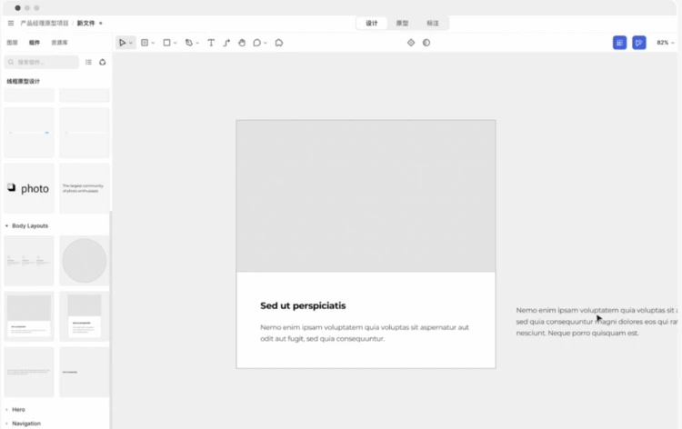从需求设计开始,产品经理可以使用MasterGo将需求“画出来”。点击团队中的产品经理项目,在这个项目中点击创建一个新的原型文件。打开左侧组件面板中的“组件管理”弹窗,找到并开启这个团队项目的组件库后,我们可以在左侧边栏中看到这些组件。我们可以通过切换视图来调节左侧组件面板的展示方式,以便在组件列表中快速找到想要的组件,然后将他们拖入到画布中进行使用,快速搭建原型图。