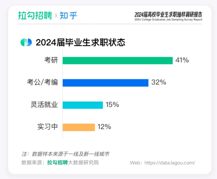 知乎《2024届高校毕业生求职抽样调研报告》:超四成考研,延迟就业升温