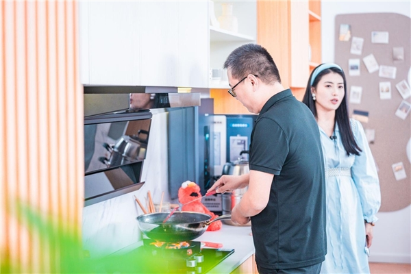 海信厨卫电器电子商务部总经理王凯来到直播间,在真实的场景中,带领大家沉浸式体验发布的“智享”系列产品。在洗碗机自动清洗餐具的同时,化身大厨走到灶台前,亲身体验DS11H(Plus)油烟机与A1灶具搭档的智慧烹饪场景。灶具点火,油烟机自动开启,1200Pa静压的超大吸力,挥手智控,灶具智慧防干烧,全方位安全保护,烹饪过程轻松无压力。几分钟的时间,王凯就端出一盘色香味俱全的清炒虾仁。让用户在参与直播的过程中拥有身临其境的生活体验——不只是看到单一产品的功能,而是可以充分体验和想象,将这些互联互通的智慧生活场景“搬”回自己家是什么样子,从而更加安心地选择相关产品及业务解决方案。