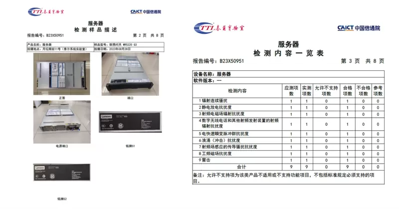 中国信息通信研究院:联想问天 WR5220 G3服务器检测内容一览