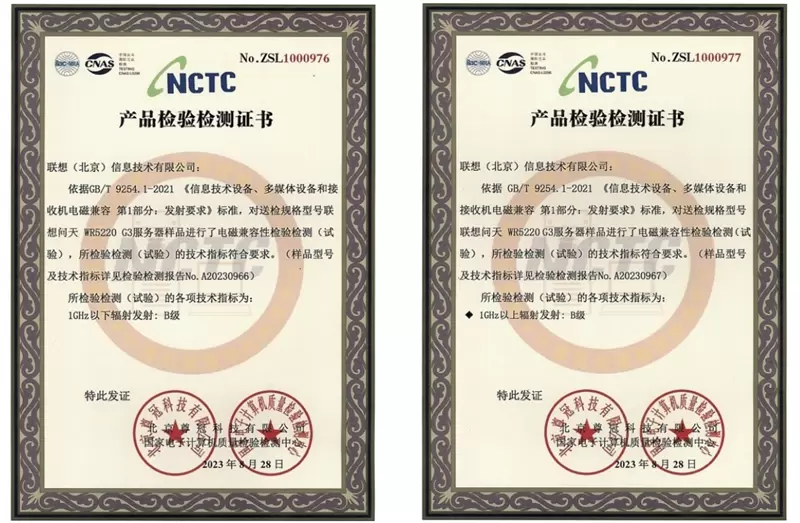 作为专为中国市场打造的一个全新、专属、定制的服务器品牌及产品线,联想问天传承了联想服务器对于高品质的追求,致力于为客户提供符合本地需求的高标准产品。而国家电子计算机质量检验检测中心(NCTC)和中国信息通信研究院是国家权威认证机构,其测试标准符合中国国情。本次测试涵盖电磁兼容性、环境适应性、电源适应能力等多项维度,联想问天WR5220 G3以高标准、严要求对待测试,在多个测试项目上刷新自身纪录。