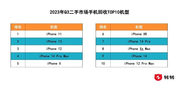 转转Q3行情报告:二手市场iPhone地位稳固,iPhone 14系列迎回收潮
