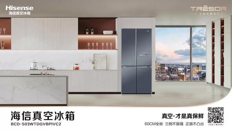 而同台亮相的海信冰箱首发新品——海信璀璨真空冰箱600同样搭载全嵌技术,完美实现60CM纯平嵌入,并与冰岩白玻璃面板搭配,有效释放空间,充分彰显灵动之美。在释放家居空间的同时,海信璀璨真空冰箱600同样考虑到目标消费群体对于大容积冰箱的需求,实力打造600L海量储鲜空间,全新突破嵌入式冰箱常见的空间受限问题,满足多口之家囤鲜需求。在保鲜科技方面,海信璀璨冰箱600搭载AI真空冰温科技,珍贵食材存入头等舱,拒绝氧化极致锁鲜,母婴食材则可专享洁净空间,AI真空冰温度定制化调节真空度,任何食材均鲜活。