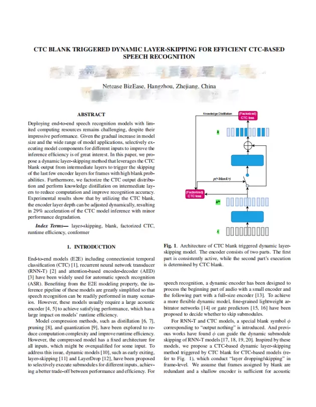 针对困扰行业的此问题,网易云商AI技术组开展深入研究。先通过使用 CTC 来标识每一帧是否是空白帧,随后,逐帧动态决定 Encoder 的层数,对于空白帧仅使用 Encoder 的一部分层建模,其他关键帧则使用整个 Encoder 建模。