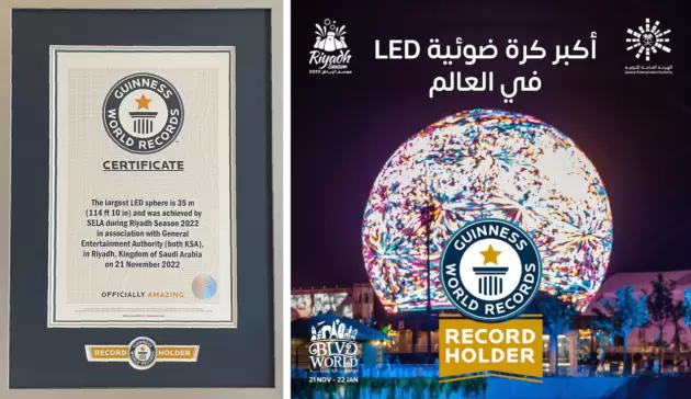 近期,拉斯维加斯的MSG大球以其极具科技感与未来感的沉浸式科技空间成为了“全球网红”,同时也为当地带来了巨额的经济效益。同样震撼世界的还有沙特的巨型LED球型屏。早在2022年沙特阿拉伯的Riyadh RiyadhSeason中,洲明科技就独立打造了一座直径35米的球形LED大屏“巨物”,一举拿下当时的球型屏吉尼斯世界记录,并以沉浸式的原创数字内容,吸引全球游客前来打卡,现已成为沙特经济转型的“新地标”。