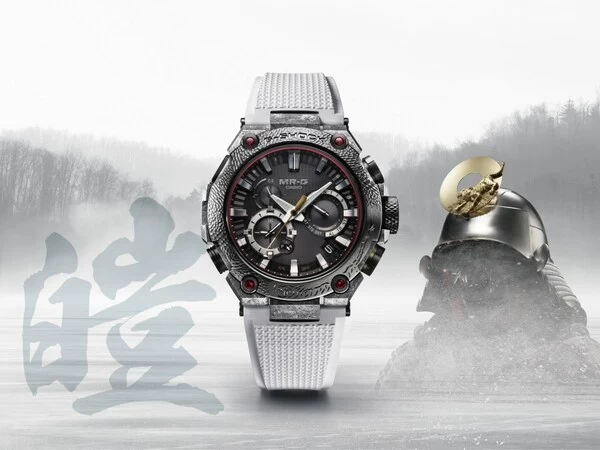 卡西欧计算机株式会社(Casio Computer Co., Ltd.)今天宣布推出G-SHOCK品牌防震手表MR-G旗舰系列的新成员,庆祝G-SHOCK品牌诞生40周年。以Shougeki-Maru: Gaikabuto头盔为灵感,MRG-B2000SG采用头盔的前立饰物与老虎图案,唤起白色的ito odoshi,[1],体现一个忠于自己信念的武士的强大决心。这款特别款手表限量供应,全球只有700件。
