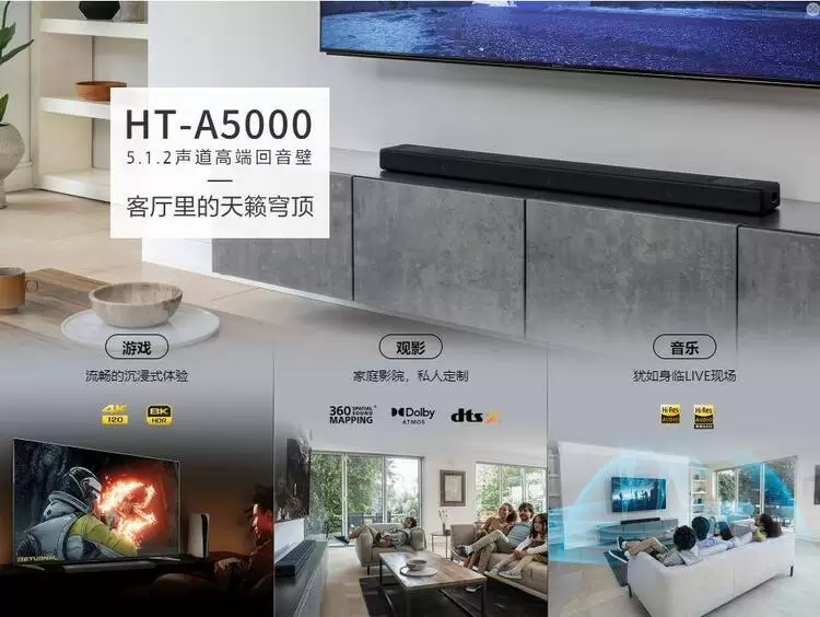 随着大屏幕电视的普及和家庭娱乐需求的不断增长,越来越多消费者都开始希望能通过更加轻松、快捷的方式获得高品质的影院级音响体验。基于对这一趋势的洞察,索尼针对回音壁产品的使用场景和用户需求,打造了无需在天花板设置物理扬声器就能实现逼真全景环绕声场音效的“360智能穹顶声场”, 消费者在购买HT-A7000,A5000或A3000等回音壁产品后,可自由选择多种型号、规格的环绕声音箱搭配组合,一步开启沉浸式环绕声体验的全新境界大门。