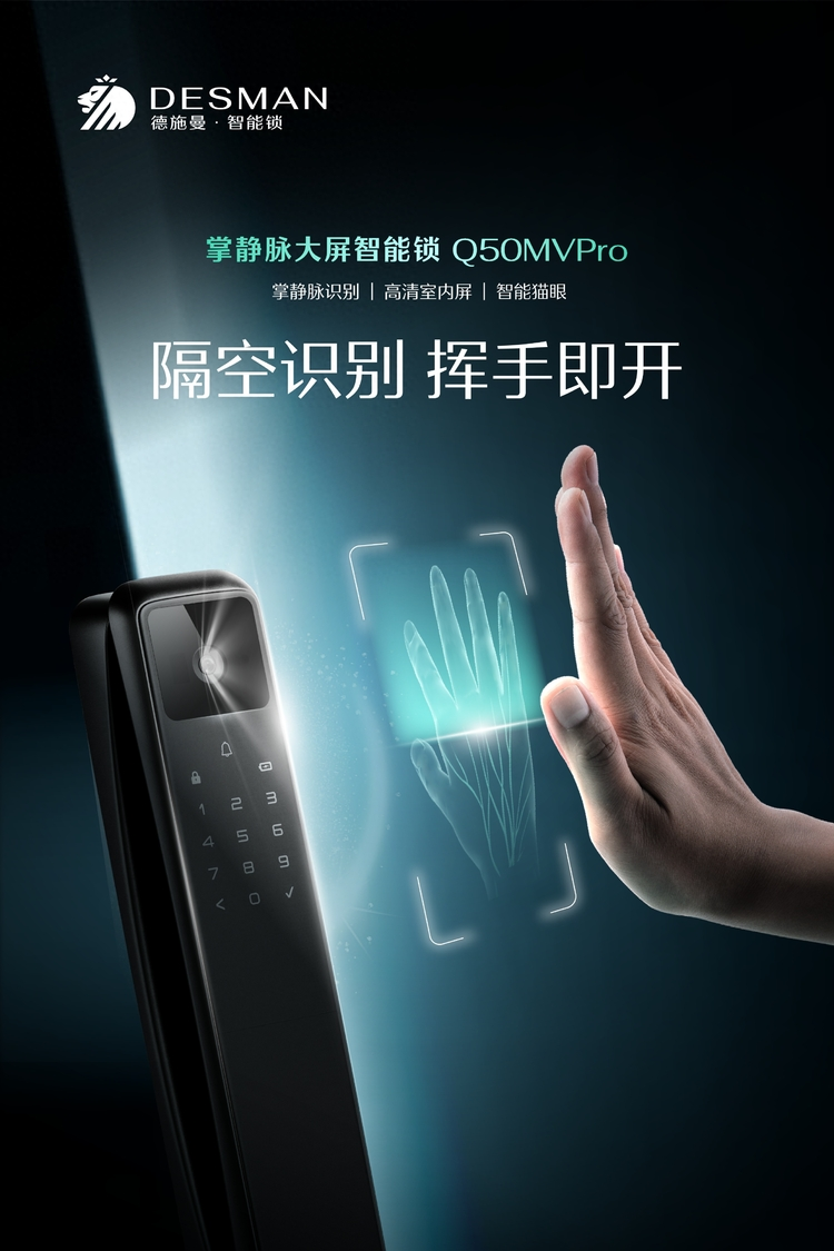 针对本次双十一德施曼推出多款爆品福利活动,全新单品掌静脉大屏智能锁Q50MVPro 隔空识别,挥手即开,搭载德施曼全新掌静脉识别技术,可做到无需特意手势,手掌的任意角度均能识别,另外识别距离更广,可在10cm-30cm范围内进行识别,这为用户提供开门最舒适的识别距离,同时德施曼掌静脉识别技术也能做到抗运动模糊,开门时动态挥手即可轻松解锁。