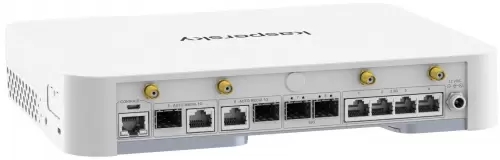 卡巴斯基 SD-WAN 支持不同类型的客户驻地设备 (CPE),允许客户使用自己的资源运行虚拟设备或使用卡巴斯基 SD-WAN 边缘服务路由器 (KESR) 系列的推荐型号。利用这种电信设备,企业可以通过一个盒子提供广泛的网络功能。