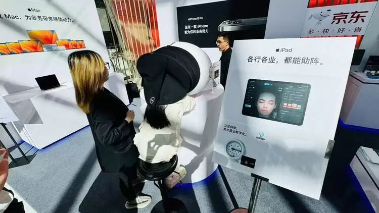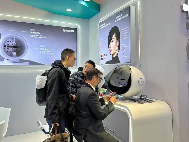 美图公司旗下科学测肤品牌美图宜肤携抗衰领域最新的研究成果,亮相天府国际会议中心D14展位,吸引了众多专家、学者、客户驻足体验美图宜肤的AI测肤产品。