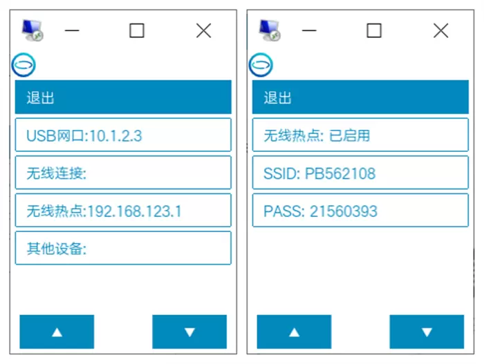 由于课堂教学中,教师想让学生能够拿着移动气象站去实地采集气象数据,对于没有无线覆盖的区域采集数据比较麻烦。为此采用开启行空板热点的方式。当启动时,会显示板子的热点名称及密码,其他设备可搜索此热点并连接板子,此时板子固定IP为10.1.2.3.