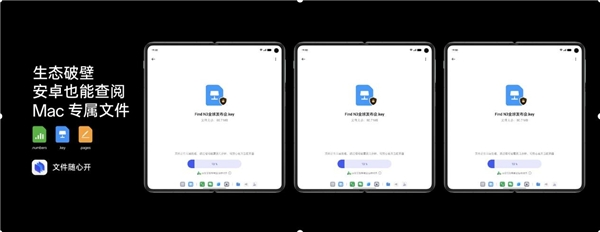 OPPO此次推出的「文件随心开」拥有三大核心功能特点。首先是多种格式破壁打开,当前版本支持打开苹果生态的Pages、Numbers、Keynote办公三件套,以及CAD和Markdown格式,后续还将陆续覆盖更多文件格式,并会提供格式导出能力;其次是交互自然无感,文件随心开功能将被打造成系统级的泛在能力,用户无需额外下载和安装任何插件即可打开上述文件格式;最后是预览快人一步,功能支持多模态分时缓存,已打开预览过的文件可实现“秒开”,享受与本地效果近乎一致的打开体验。
