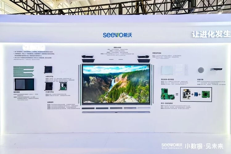 展会现场,将推出的希沃第七代交互智能平板首次亮相,这是一款搭载希沃教学大模型的AI教学终端。这款产品搭载了算能第四代AI处理器BM1684X,拥有高达32TOPS,集成希沃自研教学大模型,可实现高效的数据传输和响应速度,也巩固了数据的安全性。可以说,这是一次人工智能与教育数字化技术的深度融合,为AI大模型加速在教育场景的应用提供了新范本。