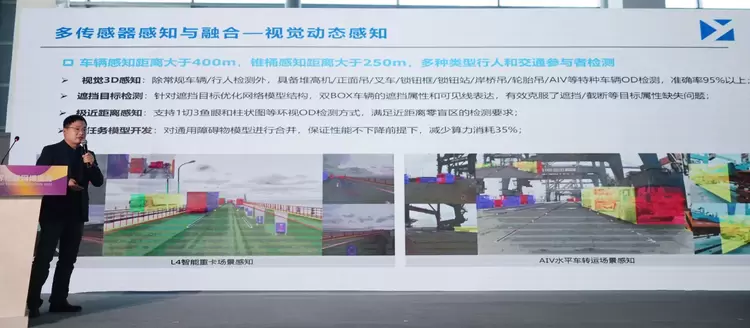 会上,赖杰分享了友道智途多传感器感知与融合的前沿落地经验。据他介绍,作为国内首个实现“真无人”技术验证落地并启动常态化测试运营的自动驾驶科创企业,友道智途拥有1000米超视距感知、多传感器融合感知决策、拟人化自动行车超车泊车、五车编队行驶等行业领先L4自动驾驶技术,能实现全场景360°动态目标识别,支持可通行空间检测、交通标志识别等功能,确保全天候、全场景实时环境感知。
