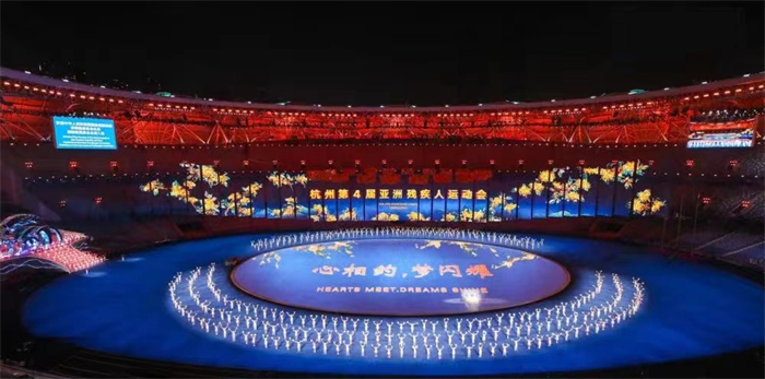 在这场开幕式中,中润光电以高科技地屏、网幕助力,积极创新场景引用,通过更有温度的方式创造出别样的科技精彩。数字化绚丽蝶变的场景,全景式地呈现了残疾人自强不息的故事、运动员拼搏竞奔的梦想、杭州人温暖关怀的深情、亚洲人满怀期待的祝愿,不仅有力彰显出杭州之美、中国之美,也留下了亚残运会的一抹永恒经典。