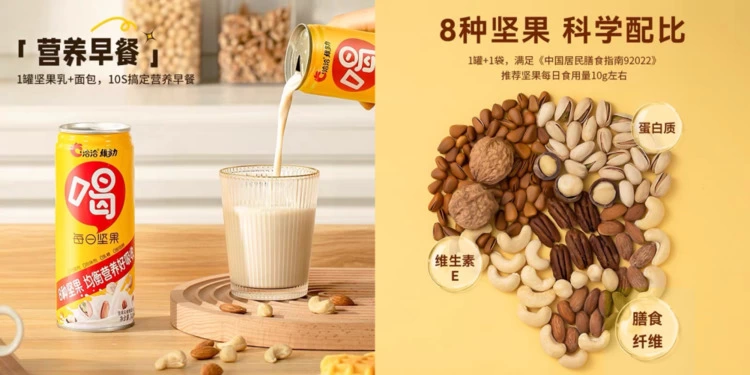洽洽推出新品牌维多力,同步上线每日坚果乳,选用开心果、榛子、核桃仁、碧根果、腰果、夏威夷果、巴旦木、松子仁等8种当季采摘坚果,一口满足8种坚果带来的营养元素;经过9道研磨工序,口感更加细腻,更好吸收;同时,0防腐剂、0甜味剂、0乳糖、0胆固醇,拒绝多余添加,保持自然营养,孕妇、儿童、乳糖不耐受人群都可以放心食用。