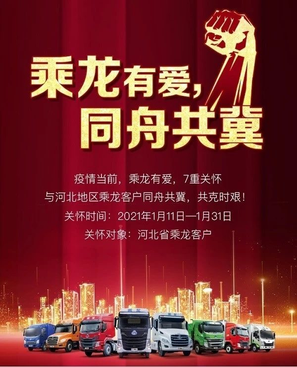 2021年河北疫情反复,乘龙推出多项关怀政策,解除广大客户的后顾之忧。