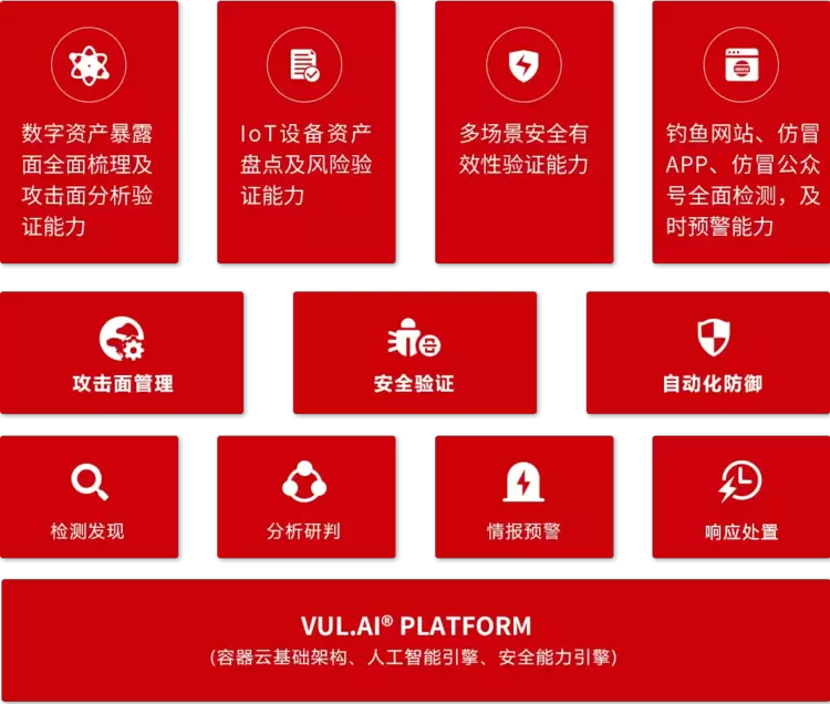 Ÿ多场景安全有效性验证能力。从攻击者视角进行实战化攻击模拟,能够对高频攻击威胁的模拟验证及防御能力评估,基于网络安全实战化攻击经验积累构建上千条攻击向量,具备面向钓鱼邮件安全防御能力、网络边界防御能力、网络入侵检测能力、网络终端防御能力的多场景安全有效性验证能力。