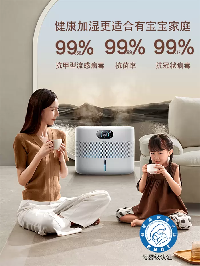 研究表明,人在室温24℃、湿度50%左右的环境下体感相对更舒适。尤其对有宝宝的家庭来说,宝宝皮肤稚嫩,器官还不发达,难以适应空气的变化,父母更需要为宝宝打造一个适宜的湿度环境。针对这一情况,亚都在对加湿器进行优化升级时,摒弃了目前市场上超声波加湿器水雾化的工作原理,使用高成本纯净水,采用冷蒸发、自然蒸发加湿方式,有效阻止PM2.5等可吸入颗粒物,并加入智控恒湿功能,轻松地让室内环境保持50%的恒湿效果,带给家长及宝宝更适宜的居住享受。