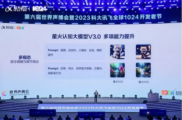 现场科大讯飞董事长刘庆峰、研究院院长刘聪发布讯飞星火认知大模型V3.0,七大能力持续提升,整体超越ChatGPT,医疗领域超越GPT-4。星火3.0升级启发式对话、AI人设功能,能够打造更个性化的AI助手。