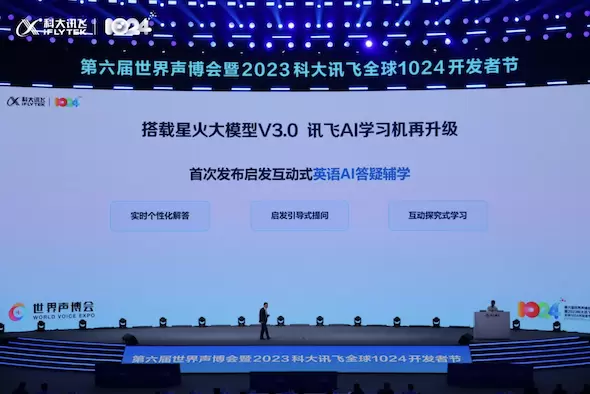 发布会上,搭载了星火大模型V3.0 讯飞AI学习机再度升级,首次发布启发互动式英语AI答疑辅学功能,实现个性化解决、启发引导式提问、互动探究式学习。刘聪在现场实测进行多轮提问,无论是探讨语法对错还是理解文章主旨,讯飞AI学习机都能自如回答。