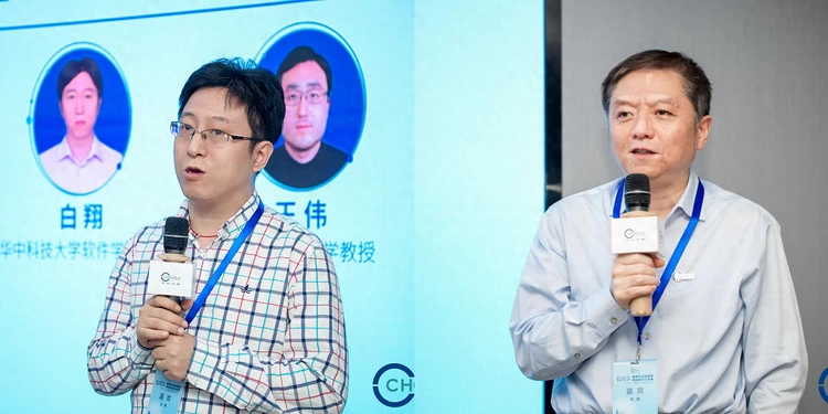 华中科技大学软件学院院长白翔教授,重庆邮电大学软件学院院长钱鹰教授代表上台发言