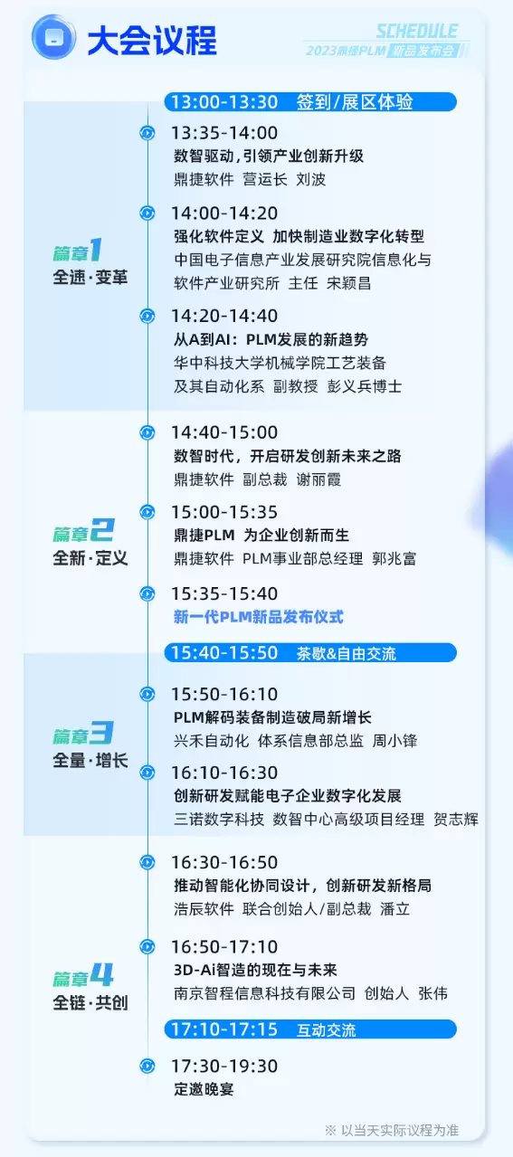 有研究机构预测,中国PLM市场将保持复合增长率13.3%的势头,到2026年市场规模达到63亿美元。此次发布会上,鼎捷软件将与来自不同研发数字化领域的服务商代表一起,从产业高质量发展洞察、新技术应用、服务方案创新的角度展开深入的分享,共商企业研发创新的前沿发展。同时,此次发布会上将有来自电子与装备制造行业的标杆企业,结合自身在研发创新领域的实践经验,展现各自的研发数字化成效,期待为更多企业和产业的数字化转型提供实践层面的典范借鉴。