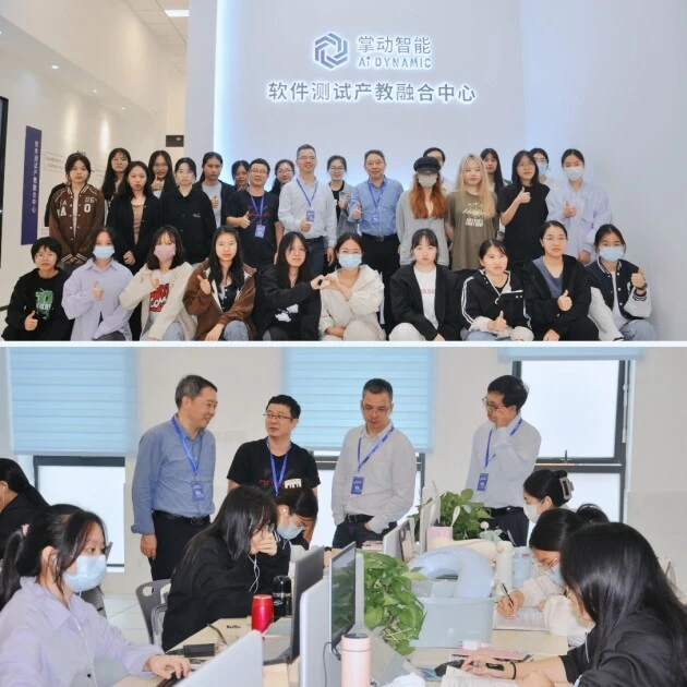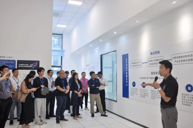 与会院校领导、教授专家代表一起参观掌动智能软件测试产教融合中心,了解产教融合中心的建设思路和阶段性成果。