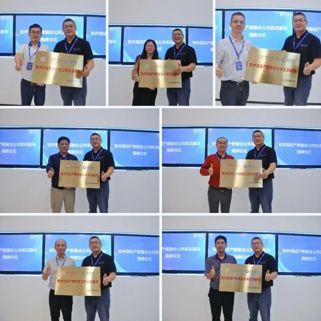 最后,在交流会上,掌动智能与七家院校分别达成了共建软件测试产教融合公共实训基地的合作意愿,并在现场举行了揭牌仪式。