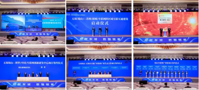 活动现场,举行了仙途智能自动驾驶清扫车和上汽大通-友道智途自动驾驶物流卡车发车仪式、无锡(锡山)-苏州(相城)车联网跨区域互联互通建设启动仪式、江苏省车联网产教融合重点基地建设点揭牌仪式。同时,现场一批车联网产业项目达成了合作意向。