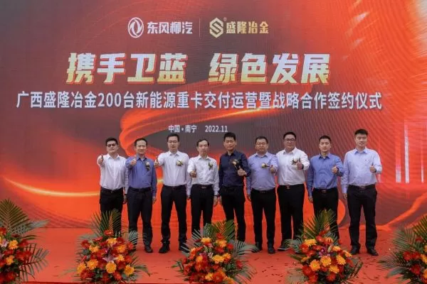 11月22日,在东风柳汽与广西盛隆冶金有限公司(下称广西盛隆)等领导及媒体嘉宾的共同见证下,“携手卫蓝 绿色发展”广西盛隆200台乘龙H5新能源批量交付运营暨战略合作签约仪式在广西隆重举行。