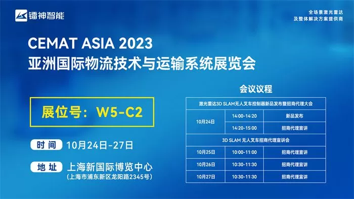 10月24日至27日,我们将在上海国际物流展连续举办四场3D SLAM无人叉车代理商宣讲会,诚邀代理加盟,精诚合作、互利共赢,共同推动无人叉车业务的蓬勃生长,期待您的加入。