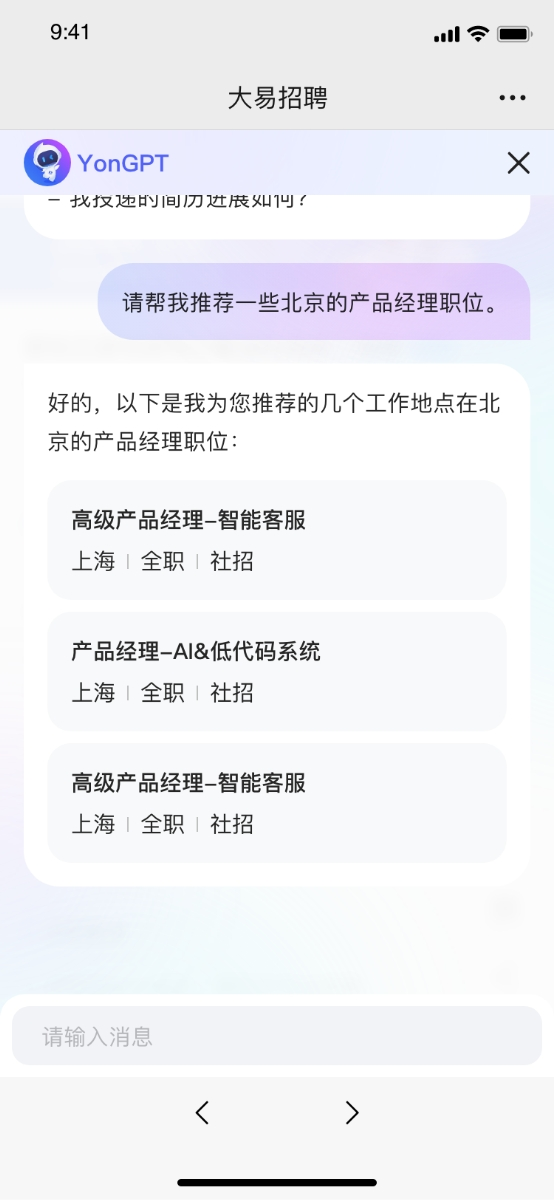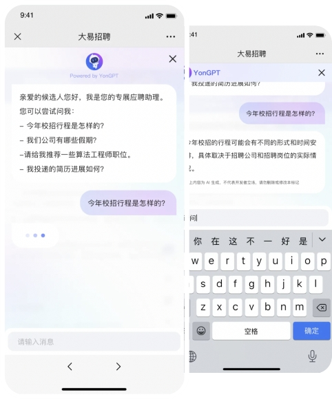 基于YonGPT企业服务大模型的用友大易招聘云全新招聘客服机器人上岗了!