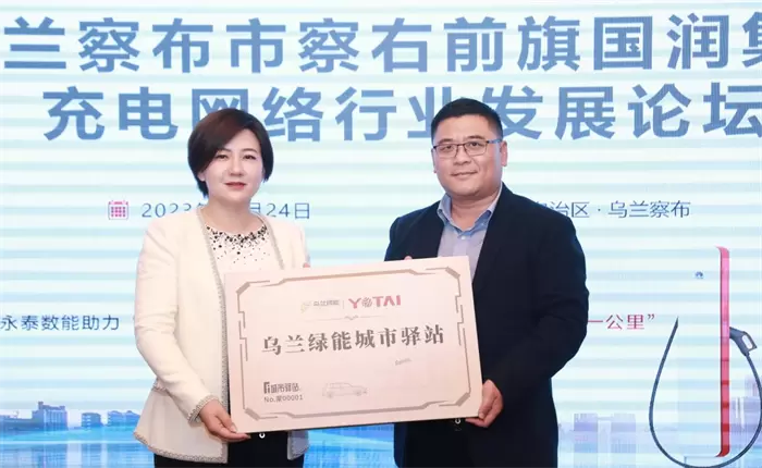 永泰数能CMO李晶晶为乌兰察布市奥特莱斯超充站进行“城市驿站”授牌