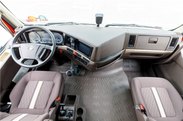 在舒适性方面,乘龙H5换电牵引车采用大空间、平地板设计,驾驶室空间超大,视野开阔,开车不压抑;拥有高端气囊减震座椅,环抱式仪表台与功能丰富的中控大屏和液晶仪表,为用户提供了舒适、便捷的驾驶体验。