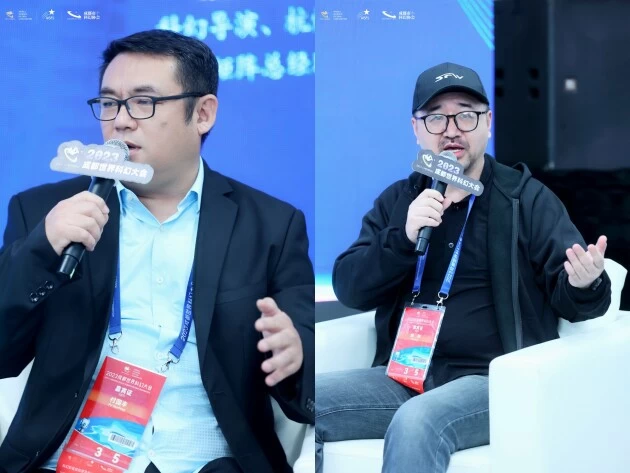 (右)郁刚 科幻导演、杭州时光矩阵科技有限公司总经理