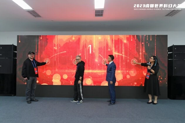活动仪式由中国光华科技基金会科技事业中心副主任刘潇骁、科普作家、“九天”科幻影视平台联合发起人翟雪连、北京市石景山区未来科幻产业发展中心理事长梁林、北京元宇科幻未来技术研究院副理事长、中关村科幻产业创新中心合伙人、“九天”科幻影视平台联合发起人田松松共同开启。