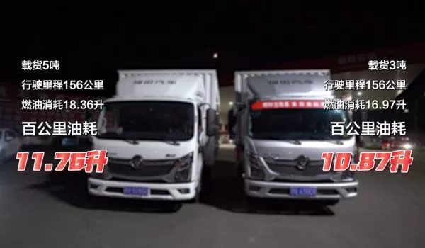 最终,车辆返回发车时的加油点,计算油耗。根据里程表差值,此次行程共计行驶156公里。载重5吨的奥铃玉兔Ⅲ,共消耗燃油18.36升,百公里油耗11.76升。载重3吨的奥铃玉兔Ⅲ,共消耗燃油16.97升,百公里油耗10.87升。这样优异的油耗表现,赢得了两位车队长的高度认可。