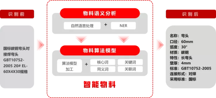 筑龙智物将杂乱且非结构化的采购物料数据进行标准化、结构化处理,制定统一规范的流程,实现跨部门、跨系统的数据信息共享和编码统一流转。以智能化识别技术为手段,不再依赖人工手动整理数据对应关系,助力企业提升数据质量,实现数据的持续性长效治理和复用水平,为企业数字化供应链提供先决条件。
