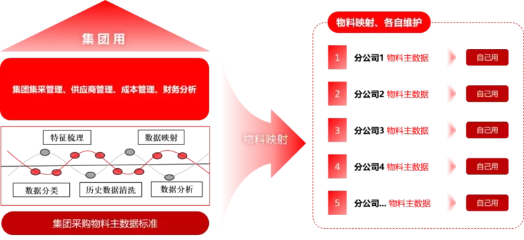 北京筑龙智能物料解决方案,通过制定“集团统一+编码映射”的方案,采用编码映射的管理模式,即集团制定一套统一的主数据分类标准及编码标准,各专业化公司可以保留已有分类及编码,并形成分类及编码之间的映射关系,相当于建设了一套翻译器,从而在根本上解决了集团和下属单位对物料标准诉求不一致的问题。而针对集团下属单位物料主数据“无标准”的问题,同样可采用智能物料识别算法解决。由于企业的核心诉求是通过集团采购平台的物料数据标准化来促进平台的数字化转型,因此,北京筑龙将智能物料识别算法结合到实际的业务场景中,纵使采购平台中有很多采购数据是非标准的,但在实际数据交互的过程中,智能识别算法都将全量的数据进行标准化的转化,这样就使采购平台流转的物料数据都是经过标准化转化的数据。