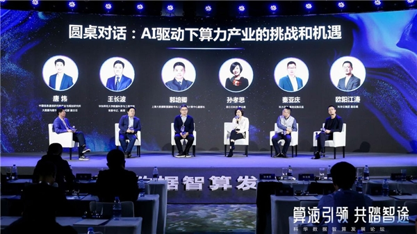 在圆桌对话环节,中国信息通信研究院产业与规划研究所大数据与数字经济研究部副主任唐炜担任主持人,华东师范大学数据科学与工程学院党委书记、教授王长波,上海大数据联盟副秘书长/上海超级计算中心副部长郭培卿,昆仑芯科技副总裁孙孝思,科大讯飞基础设施总监秦亚庆,科华云集团副总裁欧阳江涛等专家参与,围绕如何看待新一轮AIGC的爆发,如何看待当下算力产业面临的挑战和机遇,各自领域如何赋能算力产业发展,对于算力服务的需求及未来的展望等行业关注热点展开讨论,与会企业代表纷纷表示收获良多,对于算力赋能AI行业发展有了全新的理解。