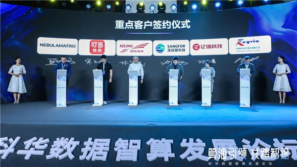 论坛期间,科华数据同北京亦庄智能城市研究院、燧原科技、墨芯人工智能科技、昆仑芯科技、欧电云等合伙作伴,及星云智联、叮当快药、亿铸智能科技、深信服、凯发电气等重要意向客户举行了签约仪式,深化各方在智算时代多层次、多领域的战略合作,搭建智算综合服务平台,助力AI产业高质量发展。