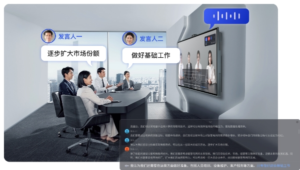 会前准备阶段,通过领效智会大模型内测版AI语音操控功能,智能发起远程会议,只需简单的语音指令,即可调节会议设备*的状态,根据与会人员需求智能调整音视频效果,省去繁琐的会前准备工作,为参会人员创造优质的会议环境,实现高效沟通。