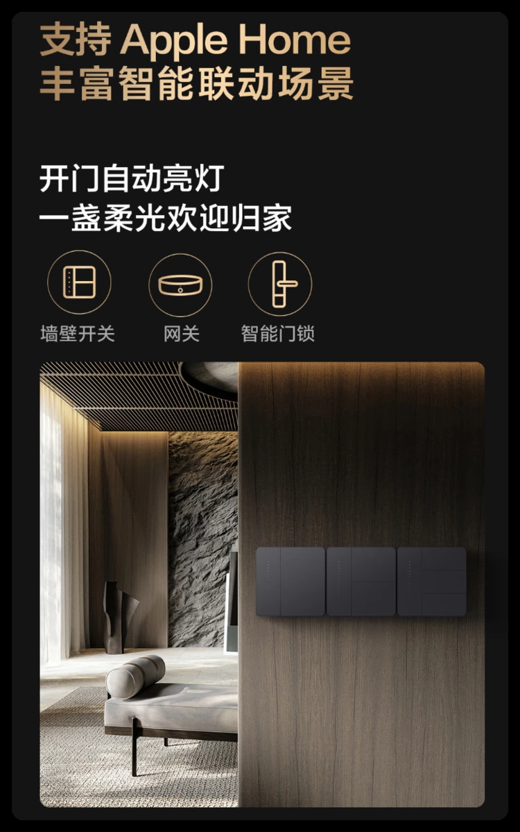 Aqara卡农 智能墙壁开关 Z1 Pro配合门锁、网关便可实现开门亮灯,关门关灯等场景,配合人体传感器实现人来灯亮、人走灯灭等场景……