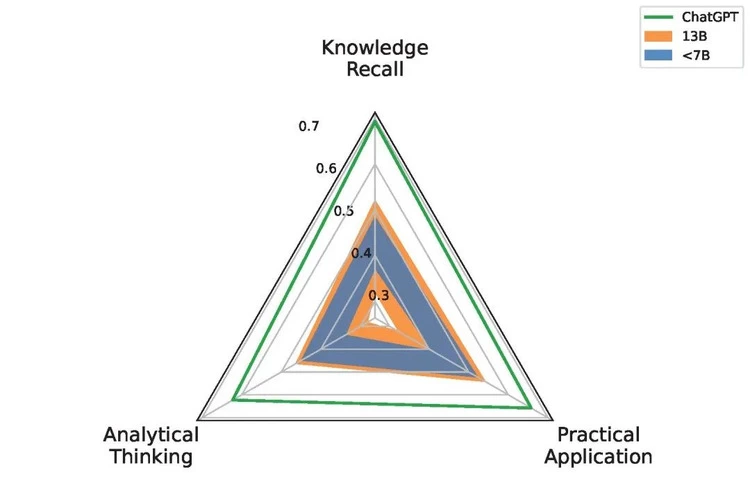 较小的模型,如LLaMA-2-7b-chat和Internlm-chat-7b,在客观的问答任务中表现出有竞争力的性能,接近具有13B参数的模型的能力,这归功于它们的微调过程和训练数据的质量。