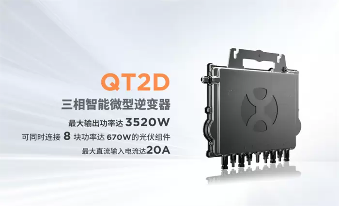 优质方案,更具性价比。QT2D作为目前业内最大功率的微型逆变器,输出功率最高可达3520W,可以完美匹配8块功率达670W的组件,而且不需要加装额外的装置及电气设备,就可以实现持续输出三相平衡交流电,降低运行风险,提升电能质量,为工商业等分布式光伏提供了极具性价比的应用方案。