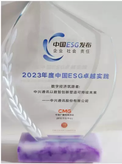中兴通讯入选“2023年度中国ESG卓越实践”奖杯