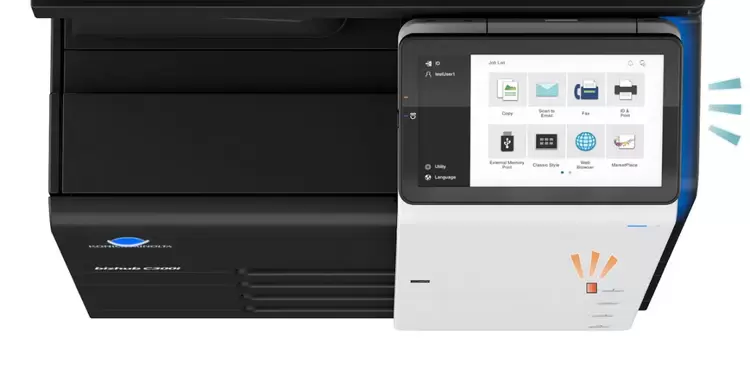柯尼卡美能达bizhub C300i配备了10.1英寸超大操作面板和LED灯光提示功能